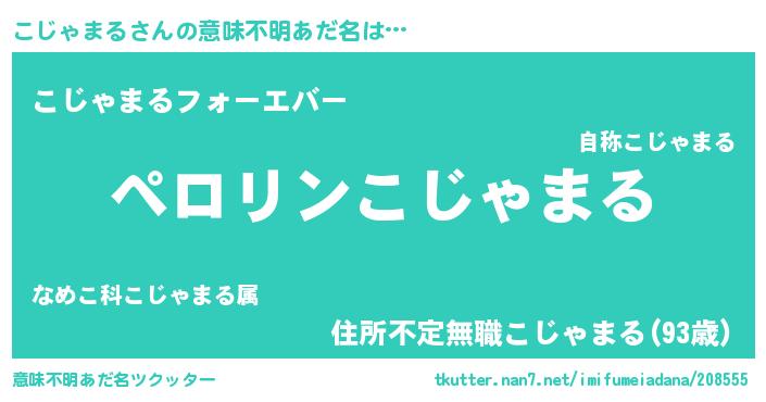 | 男性向けラノベタイトル風あだ名 | 『こじゃまるの憂鬱』 |