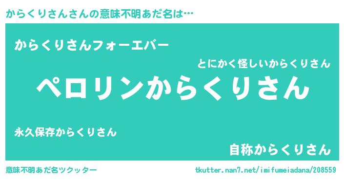 | 2回繰り返すあだ名 | 『からから』『かからら』『まじまじ』 |
