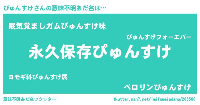 | 男性向けラノベタイトル風あだ名 | 『ぴゅんすけという概念が存在しない退屈な世界 』 |