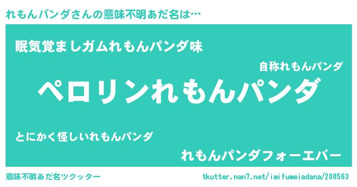 | 男性向けラノベタイトル風あだ名 | 『れもんパンダに滅ぼされるだけの簡単なお仕事です』 |