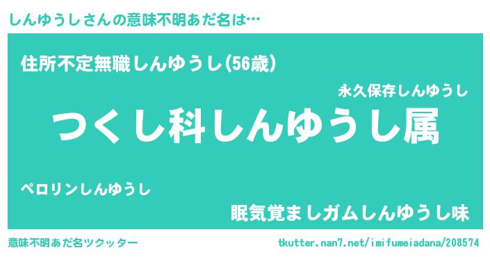 | 男性向けラノベタイトル風あだ名 | 『しんゆうしに滅ぼされるだけの簡単なお仕事です』 |