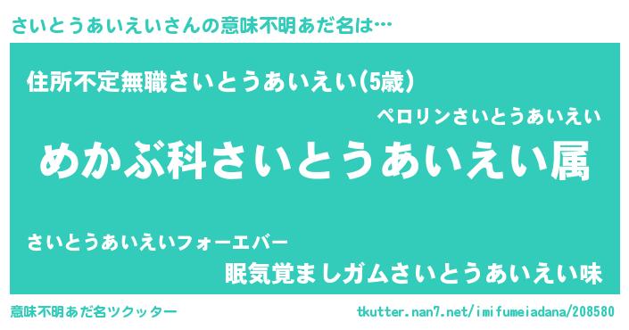 | 欧米人風あだ名 | 『トリンドルさいとうあいえい』 |