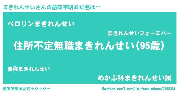 | 胡散臭い通販商品みたいなあだ名 | 『あなたにだけ特別に提供する世界で10本だけ現存している希少なブランデー…その名も「まきれんせい」』 |