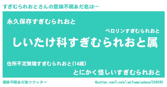 | 胡散臭い通販商品みたいなあだ名 | 『絶対に幸福をもたらす水素水…その名も「すぎむられおと」』 |