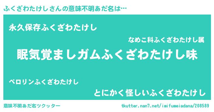 | 男性向けラノベタイトル風あだ名 | 『ノーゲーム・ノーフクザワタケシ』 |