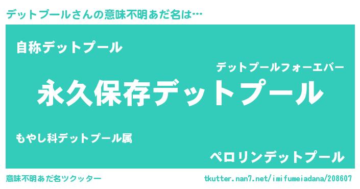 | ヒーロー風カッコイイあだ名 | 『ネオデットプール』『銀牙騎士デッ』 |