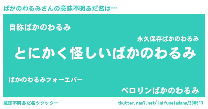 | 男性向けラノベタイトル風あだ名 | 『ばかのわるみに滅ぼされるだけの簡単なお仕事です』 |