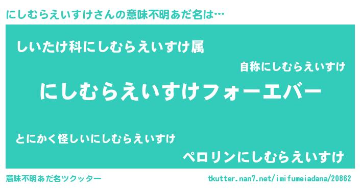 | 男性向けラノベタイトル風あだ名 | 『やはりにしむらえいすけの青春ラブコメはまちがっている 』 |