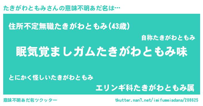 | 女子向けラノベタイトル風あだ名 | 『たきがわともみ恋絵巻』 |