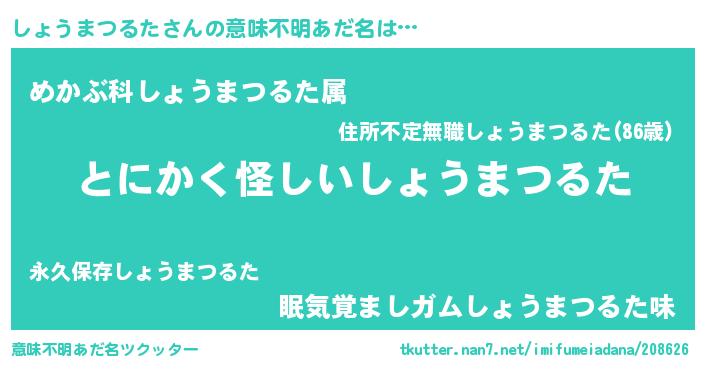 | 胡散臭い通販商品みたいなあだ名 | 『信頼と実績のペンダント…その名も「しょうまつるた」』 |