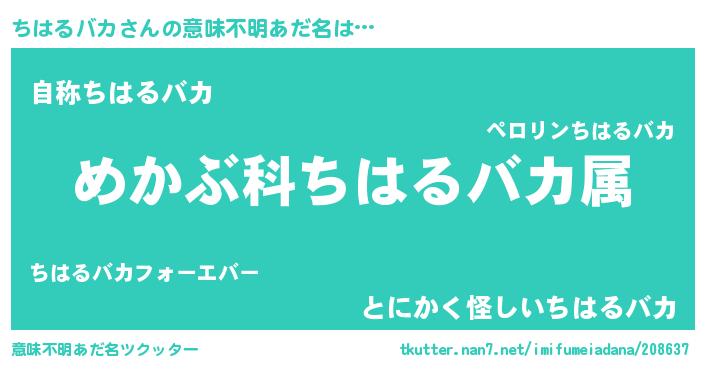 | ヒーロー風カッコイイあだ名 | 『ウルトラ戦士チハルバカ』 |