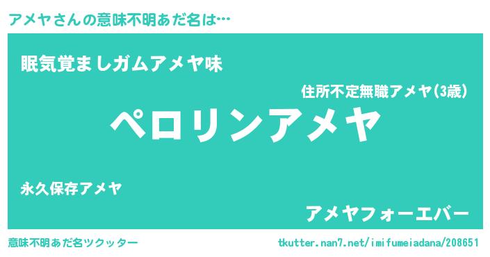 | 欧米人風あだ名 | 『マイケルアメヤ』『ダニエルアメヤ』 |