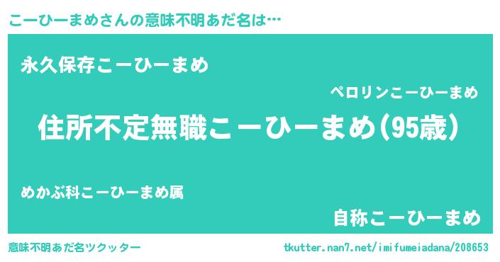 | ヘコむあだ名 | 『こーひーまめ(遠い目)』『こーもー』 |
