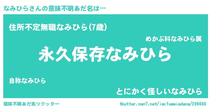 | ヘコむあだ名 | 『なみひら(笑)』『なみを』『牛乳』 |