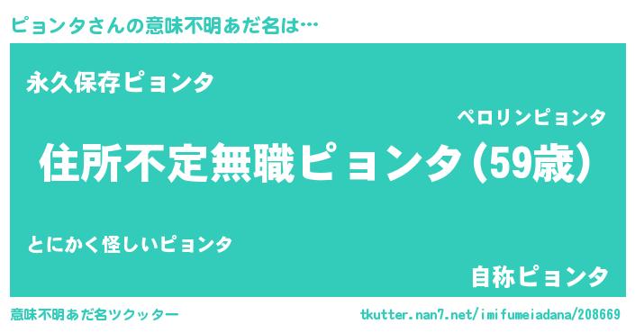 | ヘコむあだ名 | 『ピョンタ(爆)』『ピョにゅー』 |