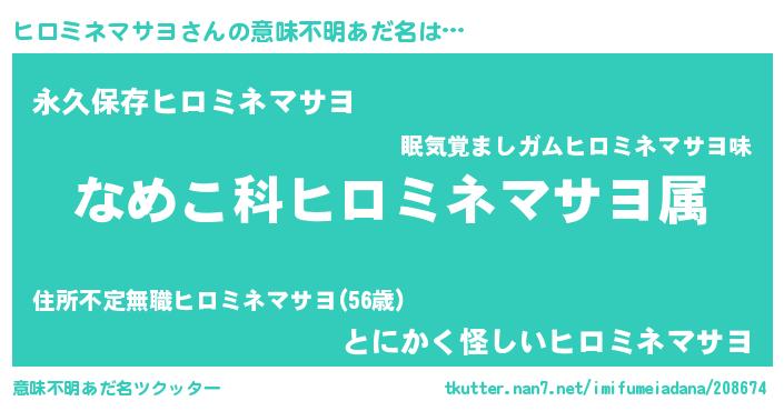 | ヘコむあだ名 | 『ヒロミネマサヨ(苦笑)』『ヒロを』 |