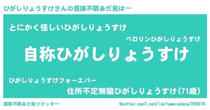 | 男性向けラノベタイトル風あだ名 | 『魔法科高校のひがしりょうすけ』 |