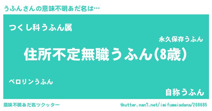 | ヒーロー風カッコイイあだ名 | 『仮面ウフダー』『最強戦士ウフン』 |