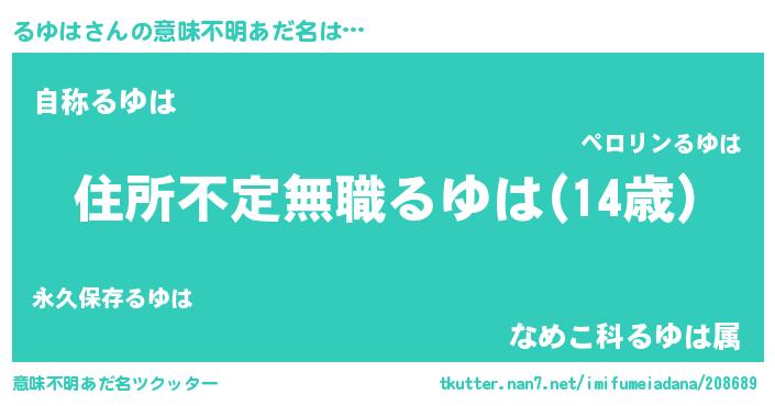 | 胡散臭い通販商品みたいなあだ名 | 『あなたにだけ特別に提供する限定10本のレアな日本酒…その名も「るゆは」』 |