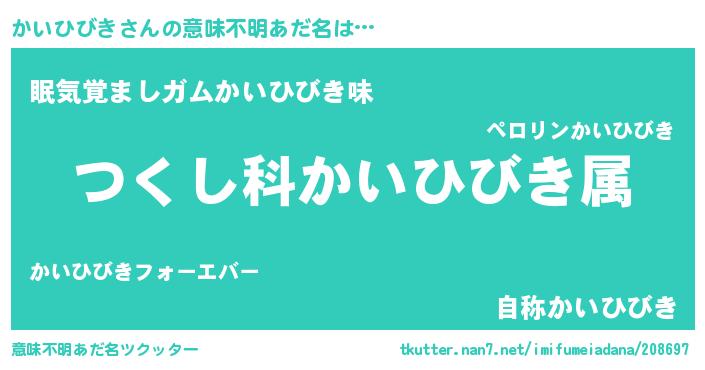 | 男性向けラノベタイトル風あだ名 | 『かいひびき~年齢イコール彼女いない歴の魔法使い~』 |