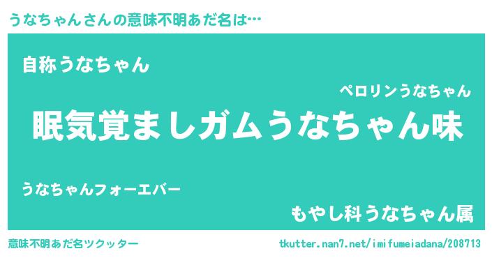 | 男性向けラノベタイトル風あだ名 | 『おまえをオタクにしてやるから、俺をうなちゃんにしてくれ! 』 |