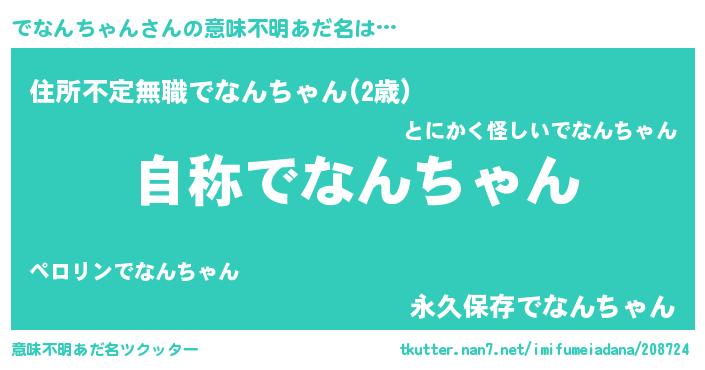 | 男性向けラノベタイトル風あだ名 | 『Re:でなんちゃんから始める異世界生活』 |
