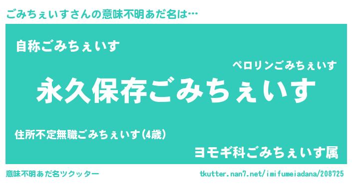 | ヘコむあだ名 | 『ごみちぇいす(笑)』『ごみっふぃ~』 |