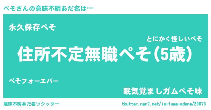 | 男性向けラノベタイトル風あだ名 | 『この素晴らしい世界にぺそを!』 |