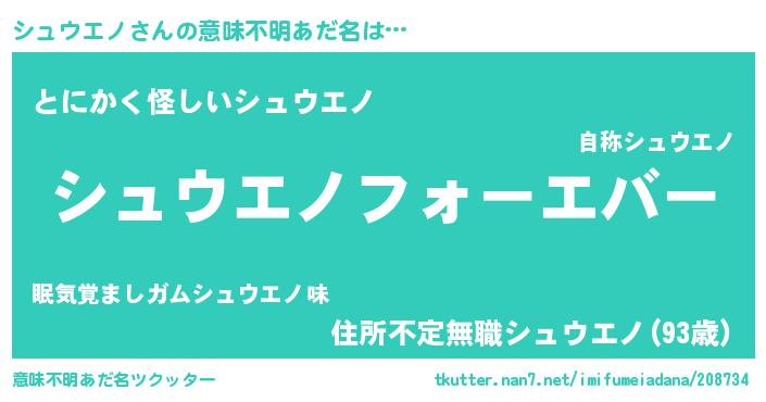 | 男性向けラノベタイトル風あだ名 | 『やはりシュウエノの青春ラブコメはまちがっている 』 |