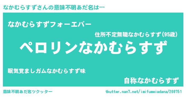 | 男性向けラノベタイトル風あだ名 | 『なかむらすずに滅ぼされるだけの簡単なお仕事です』 |