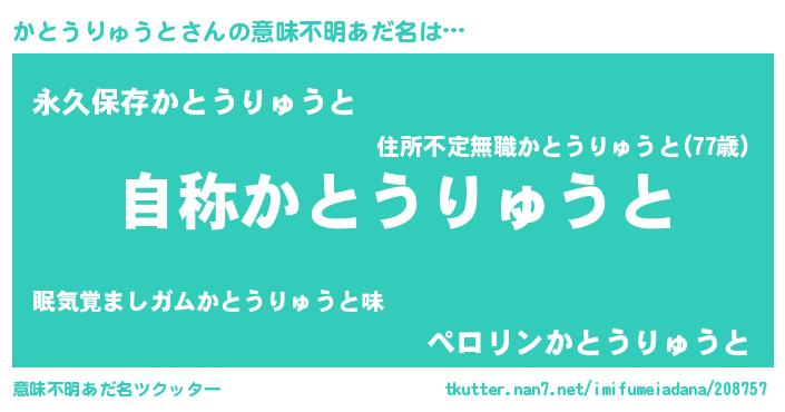 | 胡散臭い通販商品みたいなあだ名 | 『ガンによく効く冬虫夏草…その名も「かとうりゅうと」』 |