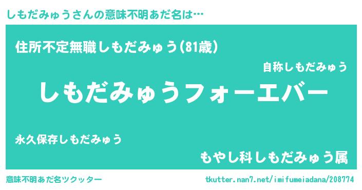 | 欧米人風あだ名 | 『しもだみゅうクリステル』 |