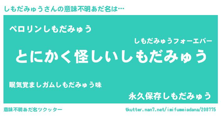 | 胡散臭い通販商品みたいなあだ名 | 『信頼と実績のネックレス…その名も「しもだみゅう」』 |
