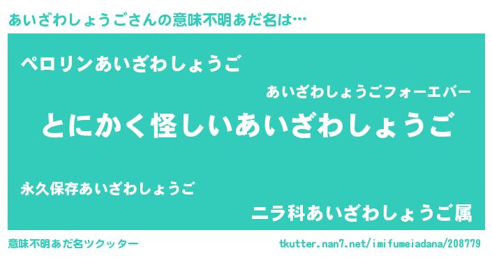 | 欧米人風あだ名 | 『ウサインあいざわしょうご』 |