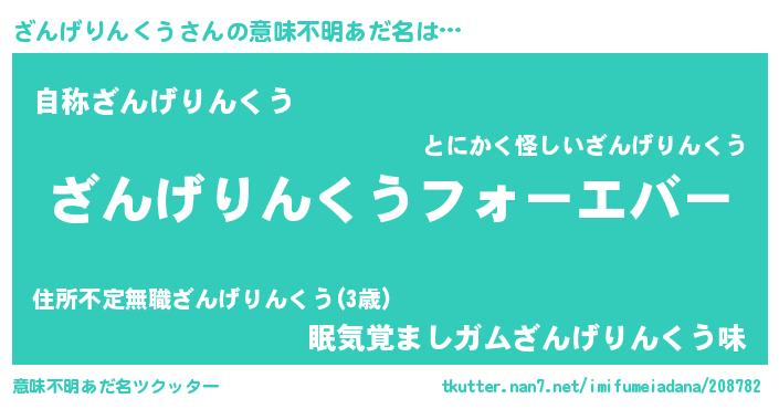| 女子向けラノベタイトル風あだ名 | 『ざんげりんくうの雑貨屋さん』 |
