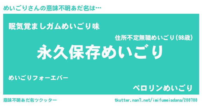 | ヒーロー風カッコイイあだ名 | 『ネオメイゴリ』『友情の使者めいごり』 |