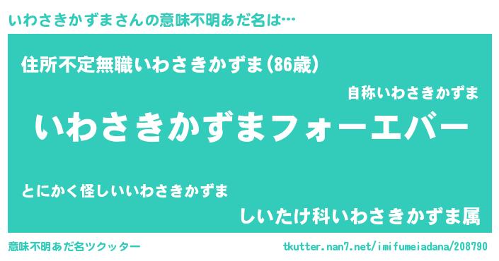 | ファンタジー風あだ名 | 『エターナルイワサキカズマー』 |
