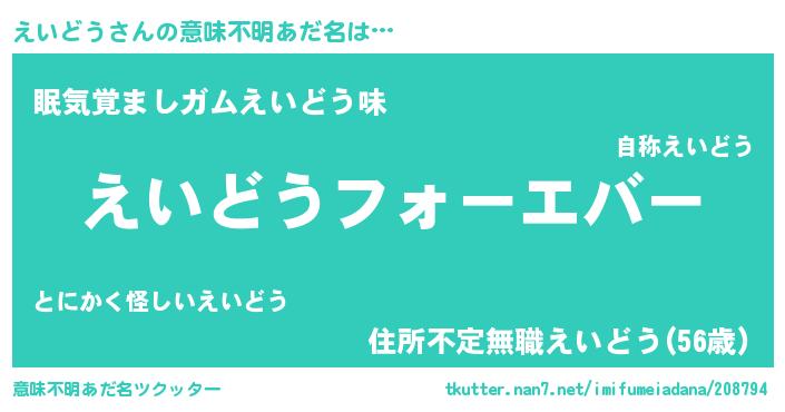 | 胡散臭い通販商品みたいなあだ名 | 『幸せが訪れる高級そうな絵画…その名も「えいどう」』 |