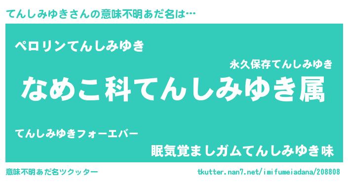 | ヘコむあだ名 | 『てんにゅー』『てんしみゆき(爆)』 |