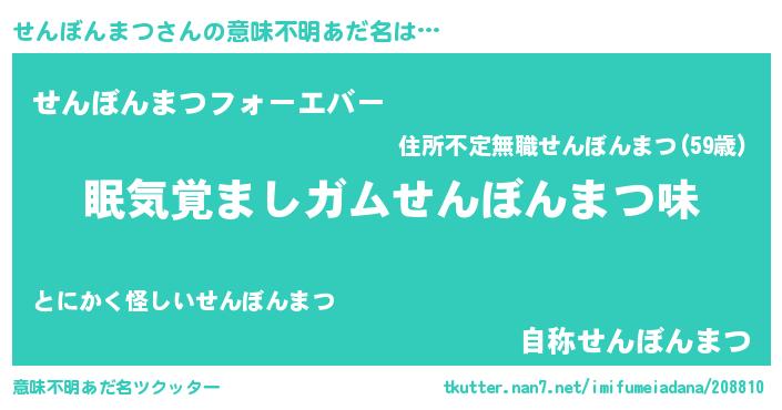 | 欧米人風あだ名 | 『アンジェラ・せんぼんまつ』 |