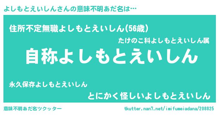 | ヘコむあだ名 | 『よしお』『よしもとえいしん(笑)』 |