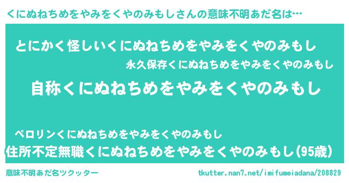 | ヒーロー風カッコイイあだ名 | 『サイバー戦士クニヌネチメヲヤミヲクヤノミモシ』 |