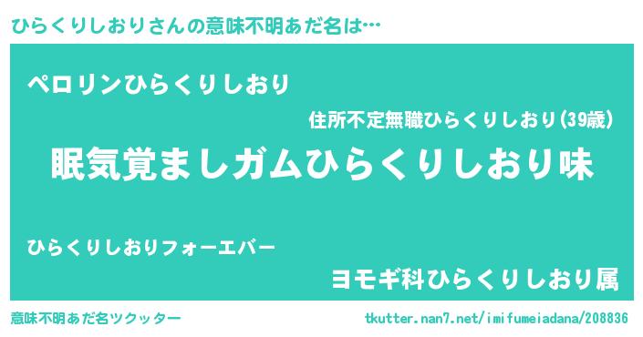 | 料理風あだ名 | 『ひらくりしおりのトマト煮』 |