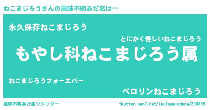 | 男性向けラノベタイトル風あだ名 | 『転生したらねこまじろうだった件』 |