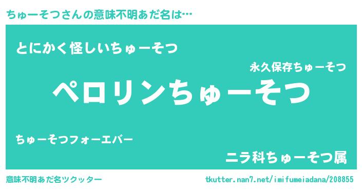 | 自動車の名前っぽいあだ名 | 『チュティマ』『チルトュパン』 |