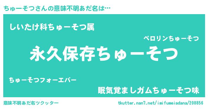 | ヘコむあだ名 | 『ちゅーそつ(震え声)』『ちゅもー』 |