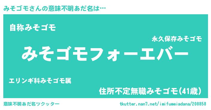 | ファンタジー風あだ名 | 『エターナルミソゴモー』『ゼミソトゥ』 |