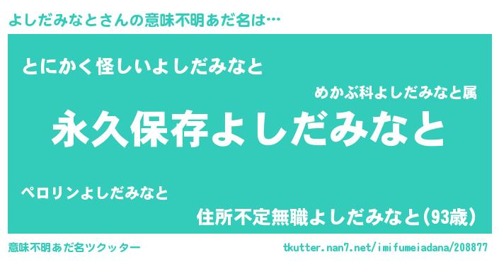 | ヘコむあだ名 | 『よしだみなと(遠い目)』『よしっ子』 |