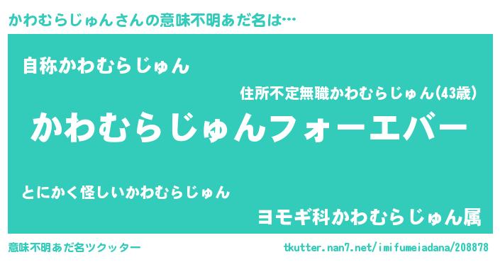 | 胡散臭い通販商品みたいなあだ名 | 『世界が平和になる高級そうな壺…その名も「かわむらじゅん」』 |
