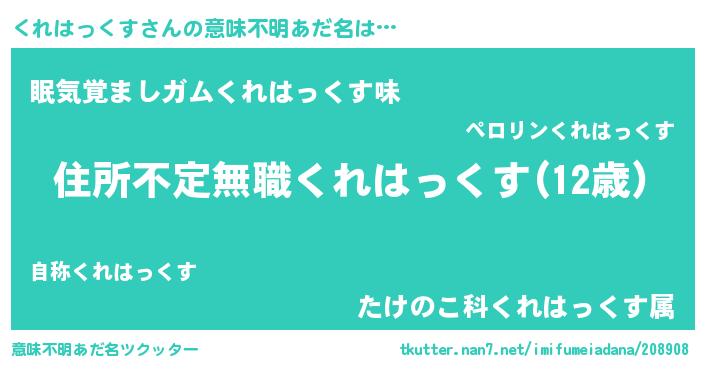 | 男性向けラノベタイトル風あだ名 | 『くれはっくすに滅ぼされるだけの簡単なお仕事です』 |